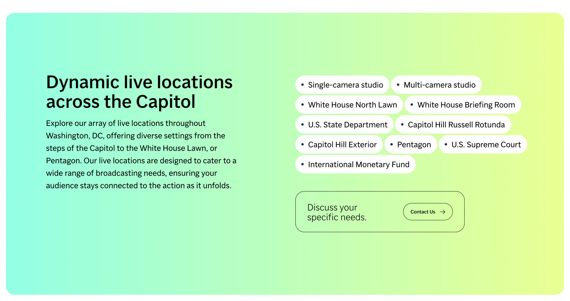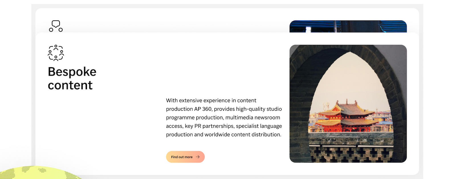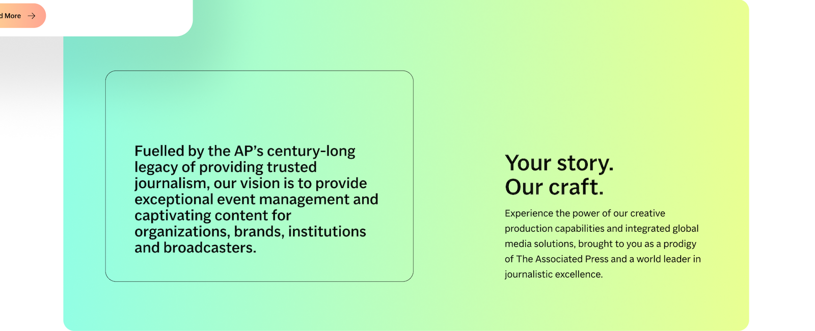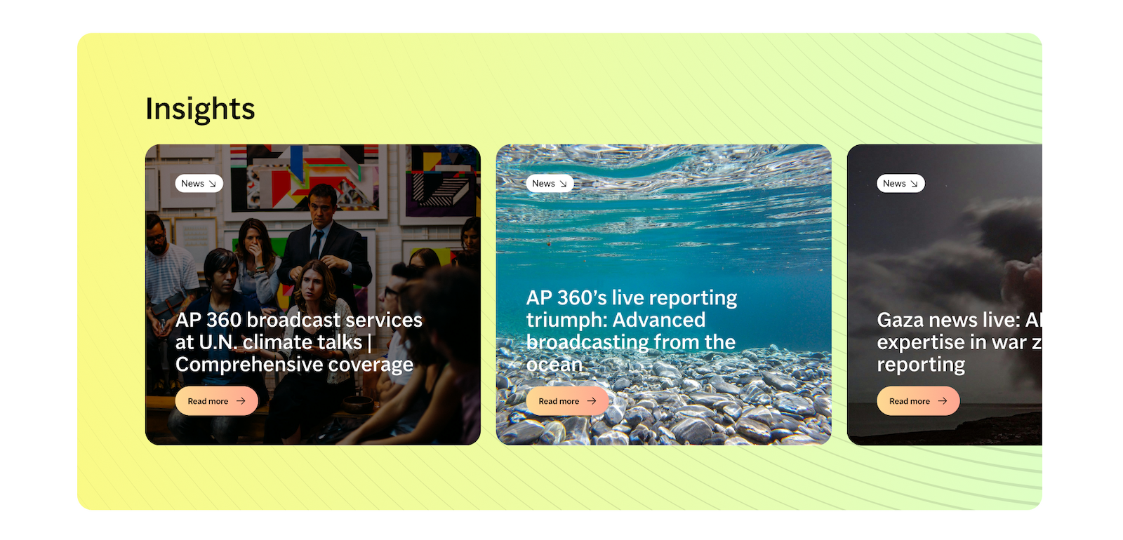 AP 360 offers global media solutions that transcend borders, they empowering brands, institutions and broadcasters to tell their stories to the world. Their roots in The Associated Press and extensive experience in production allow them to provide tailored global media solutions that help their clients stand out. Partner with AP 360 to create captivating content, live events and productions that inform, inspire and capture imagination.