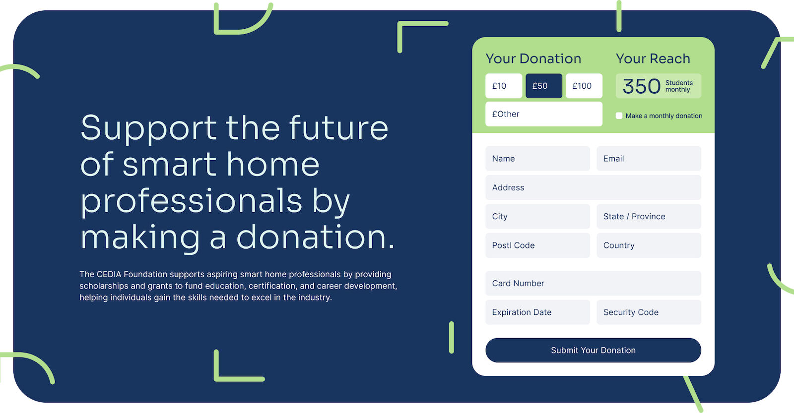 The CEDIA Foundation is dedicated to nurturing the workforce of the professional smart home industry. They recruit, educate, and support the smart home industry’s professionals who improve people’s lives at home.