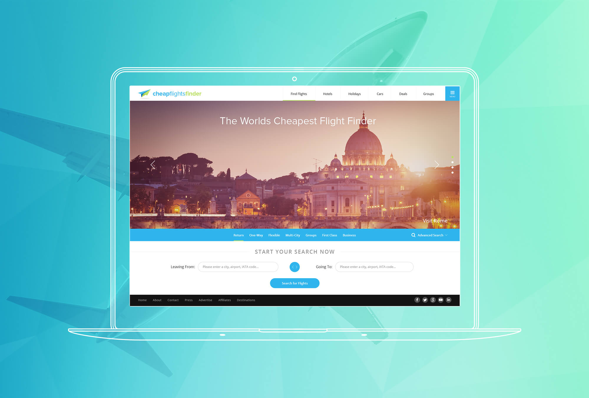 Brand and website design for Cheaper Flights Finder. We provided all the HTML/CSS and coded all the back-end development, providing the client with easy API integration. A comparison site that searches the comparison sites #inception