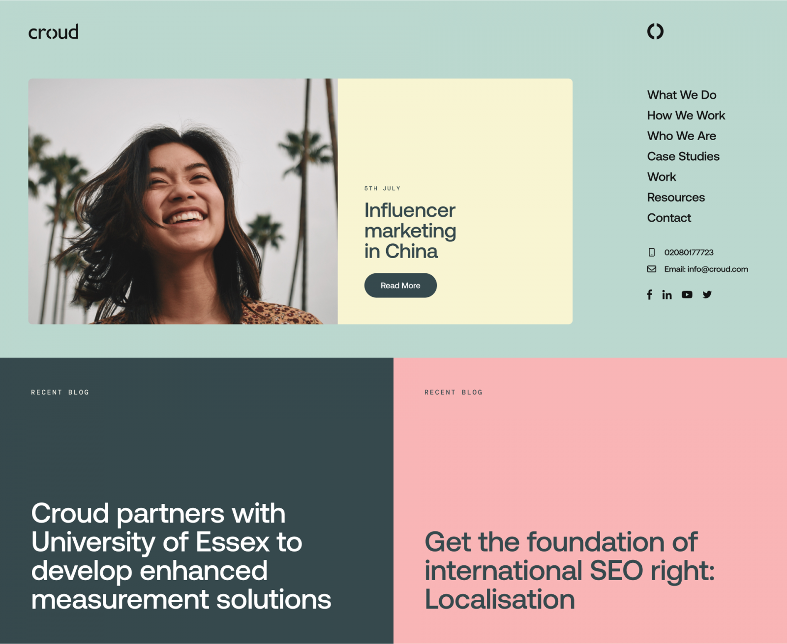 Croud had an outdated WordPress installation they found difficult to manage and update. It restricted them, making it difficult to put new content live fast. They were looking to develop a new platform that would give them more freedom and flexibility with the day-to-day management and upkeep of their website. After a tender process, Croud awarded ID Studio the contract to redesign and develop its website and the CMS that would power it.