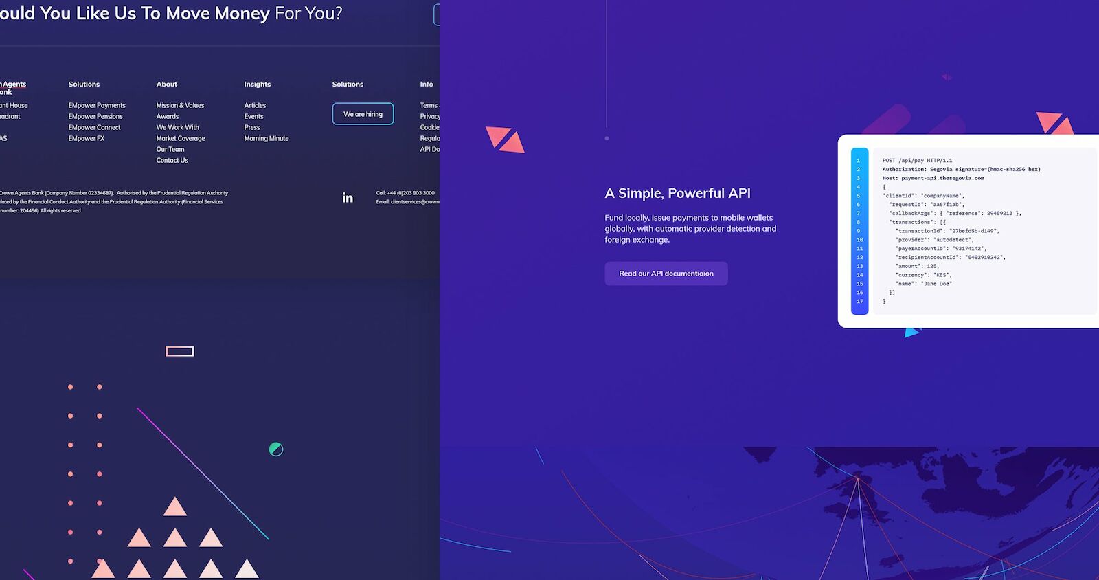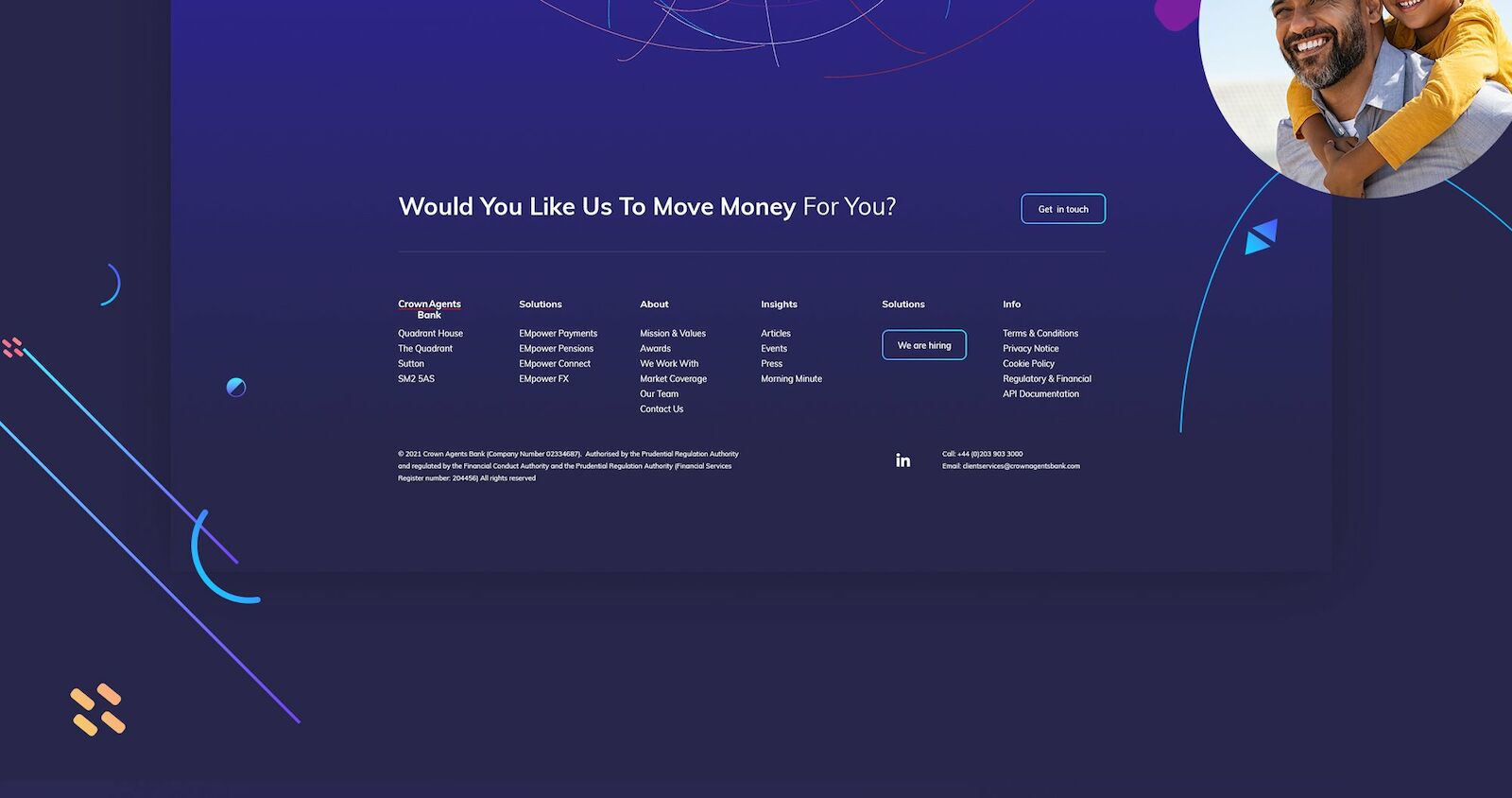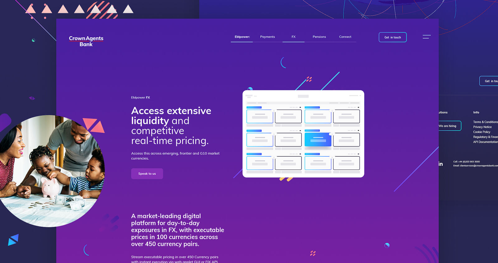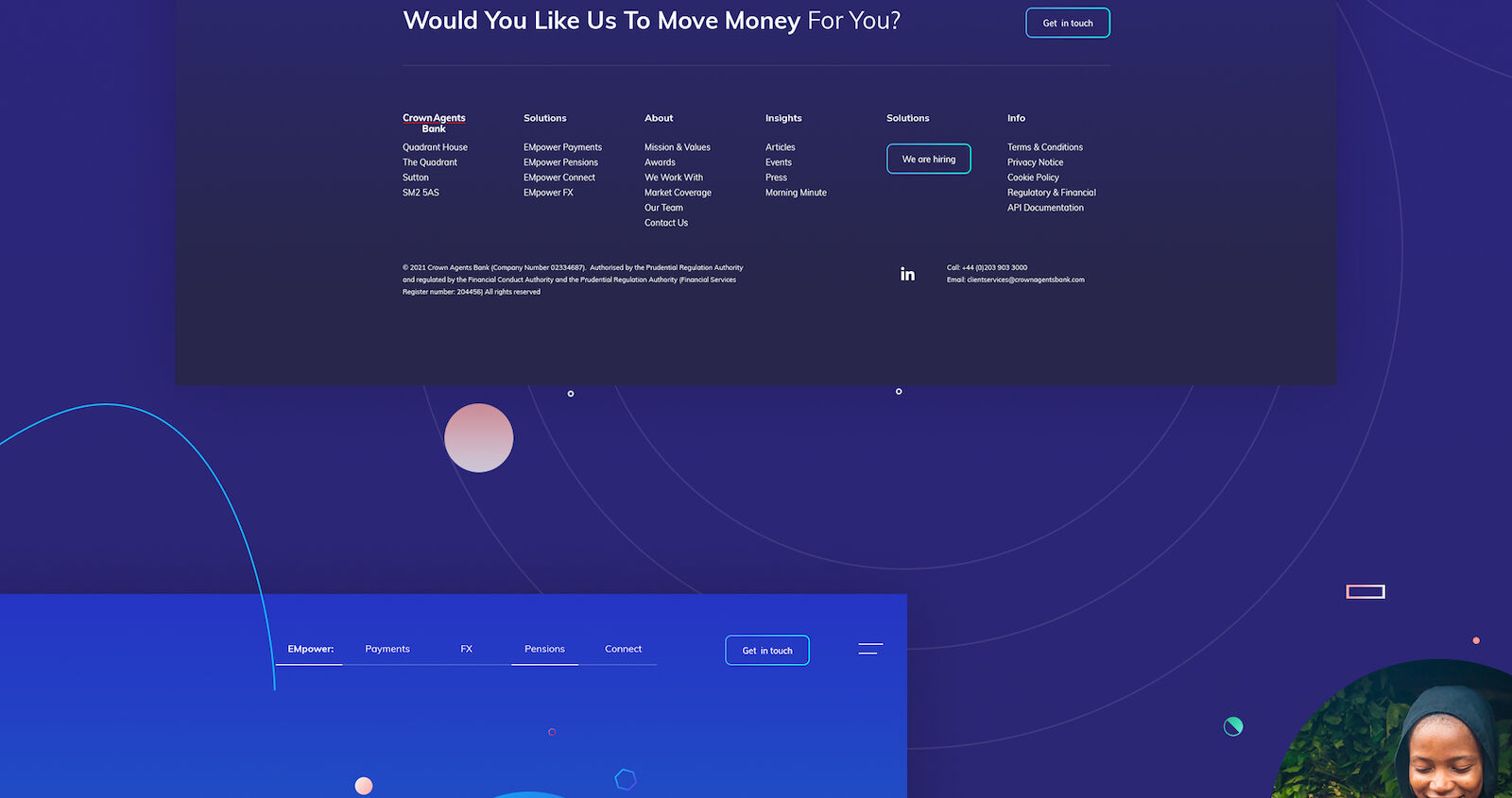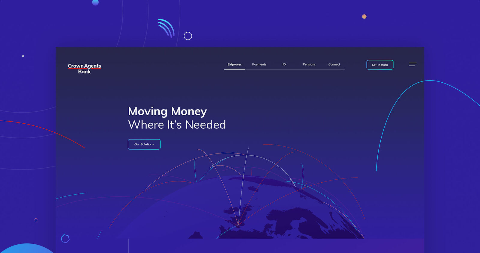 Crown Agents Bank approached ID Studio to help bring their marketing website into a more modern space to reflect the modern advances behind their platforms and technology. Crown Agents Bank approached ID Studio to help bring their marketing website into a more modern space, especially to reflect the modern advances behind their platforms and technology. At the core of what Crown Agents Bank do, is to Move money where it's needed.