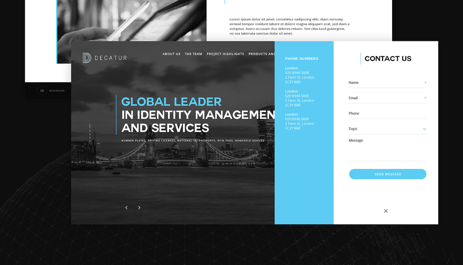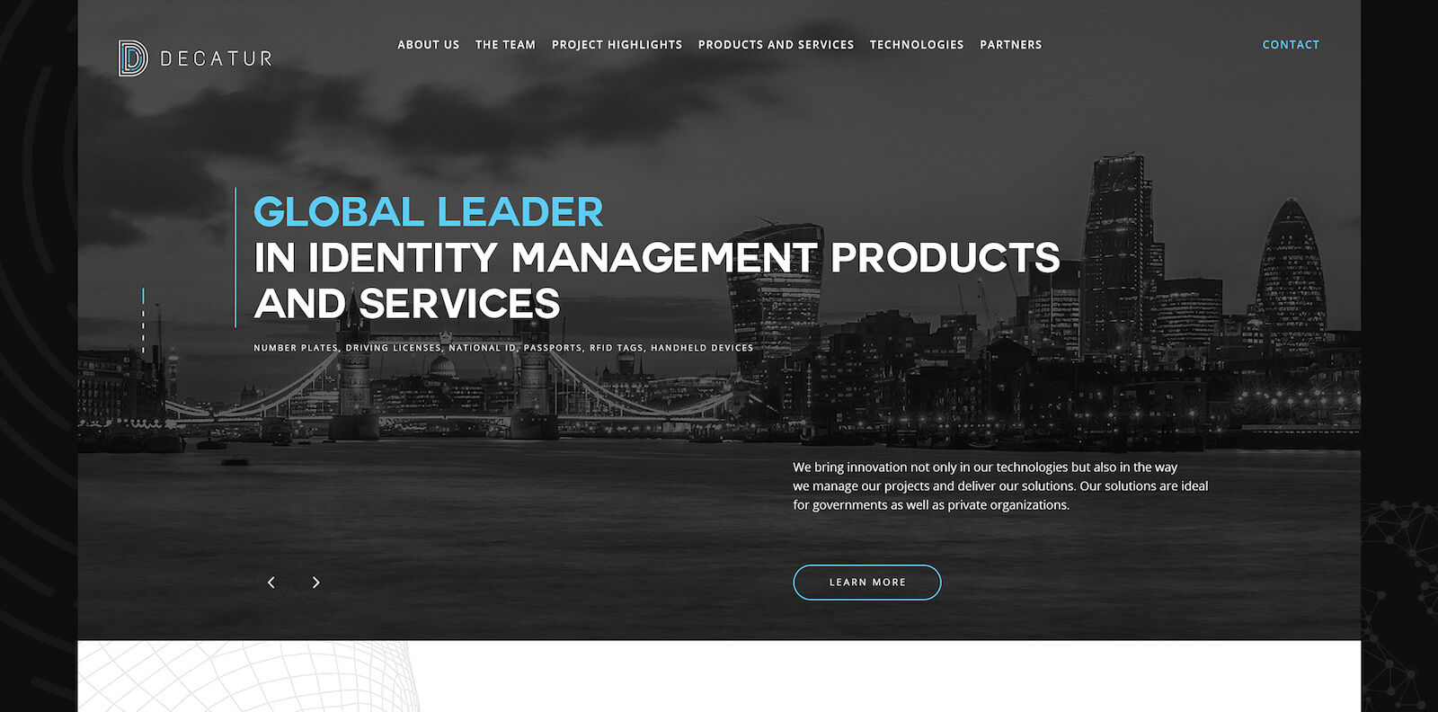 Decatur brings innovation not only in their technologies but also in the way they design their solutions and manage their projects. The Decatur suite of applications are tailored towards national e-governance objectives. ID Studio Web Agency were chosen as the London based web design agency to supply their new website.