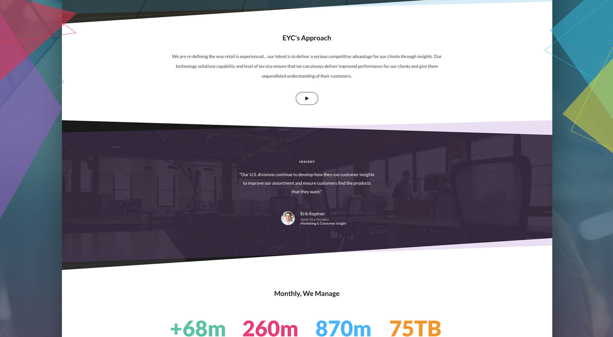 A long time client of ID Studio Web Agency, we delivered a fresh new modern website design for Symphony EYC, focusing on a clean, modern design and flexible, dynamic CMS. Symphony EYC is a global leader in delivering benefits to retailers and manufacturers. They do this by utilising customer insights to drive execution in the area of strategy and plan development, marketing, merchandise and purchasing operations, inventory management and supply chain productivity.