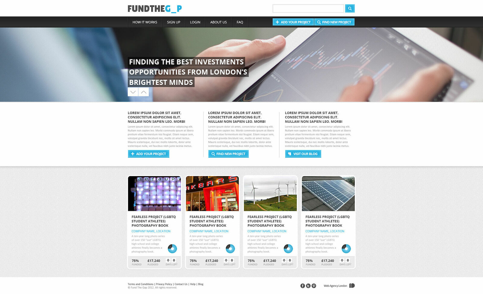 FundTheGap is an online equity fundraising platform for UK start-ups and small businesses that required a London based web design agency to deliver a solid business platform. It facilitates investment from qualified investors who can use FundTheGap to invest in a specific sector, support a local business, or back someone that they know and potentially benefit from tax reliefs like the Enterprise Investment Scheme and Seed Enterprise Investment Scheme.