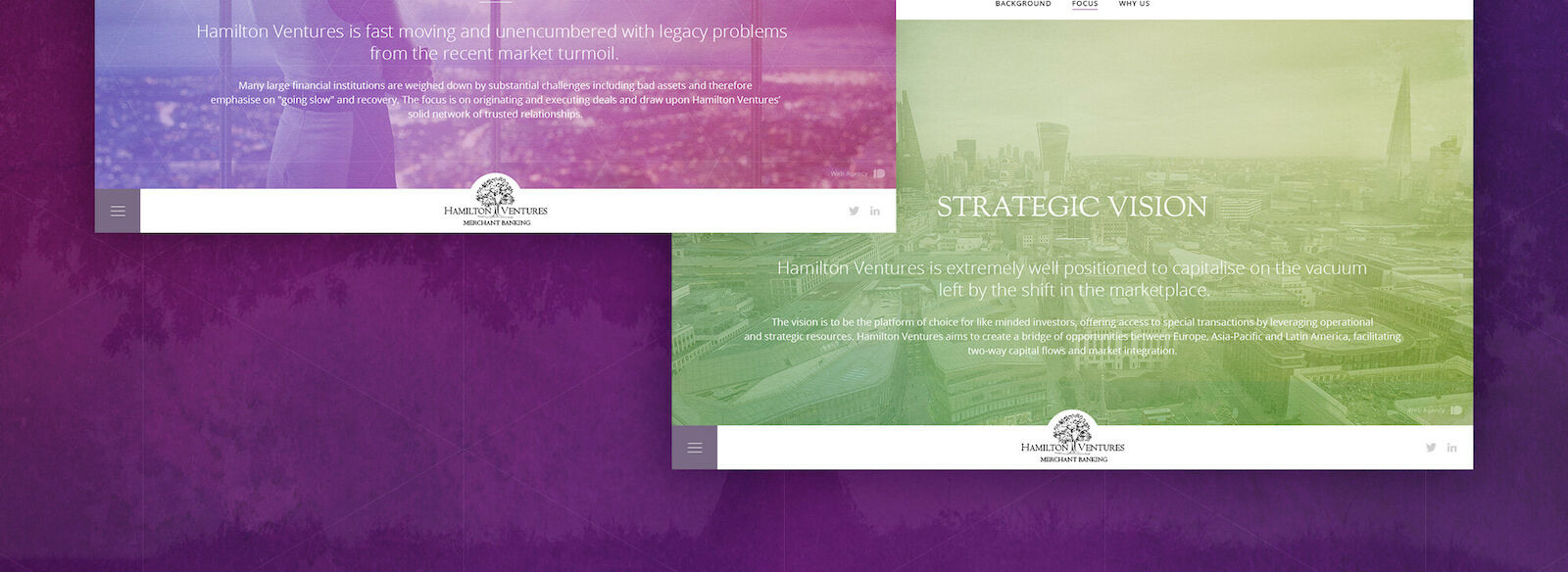 Hamilton Ventures are a classic investment firm that had a struggling online presence when we met them. With good planning and pushing the limits with the brief a little we were able to put forward a much more creative UI and a cleaner, more memorable format. Hamilton Ventures focus on helping companies with great management teams and scalable, differentiated business models achieve growth. Over time they have developed specific expertise in FinTech, however, they are interested in working with and investing in companies across the technology landscape.