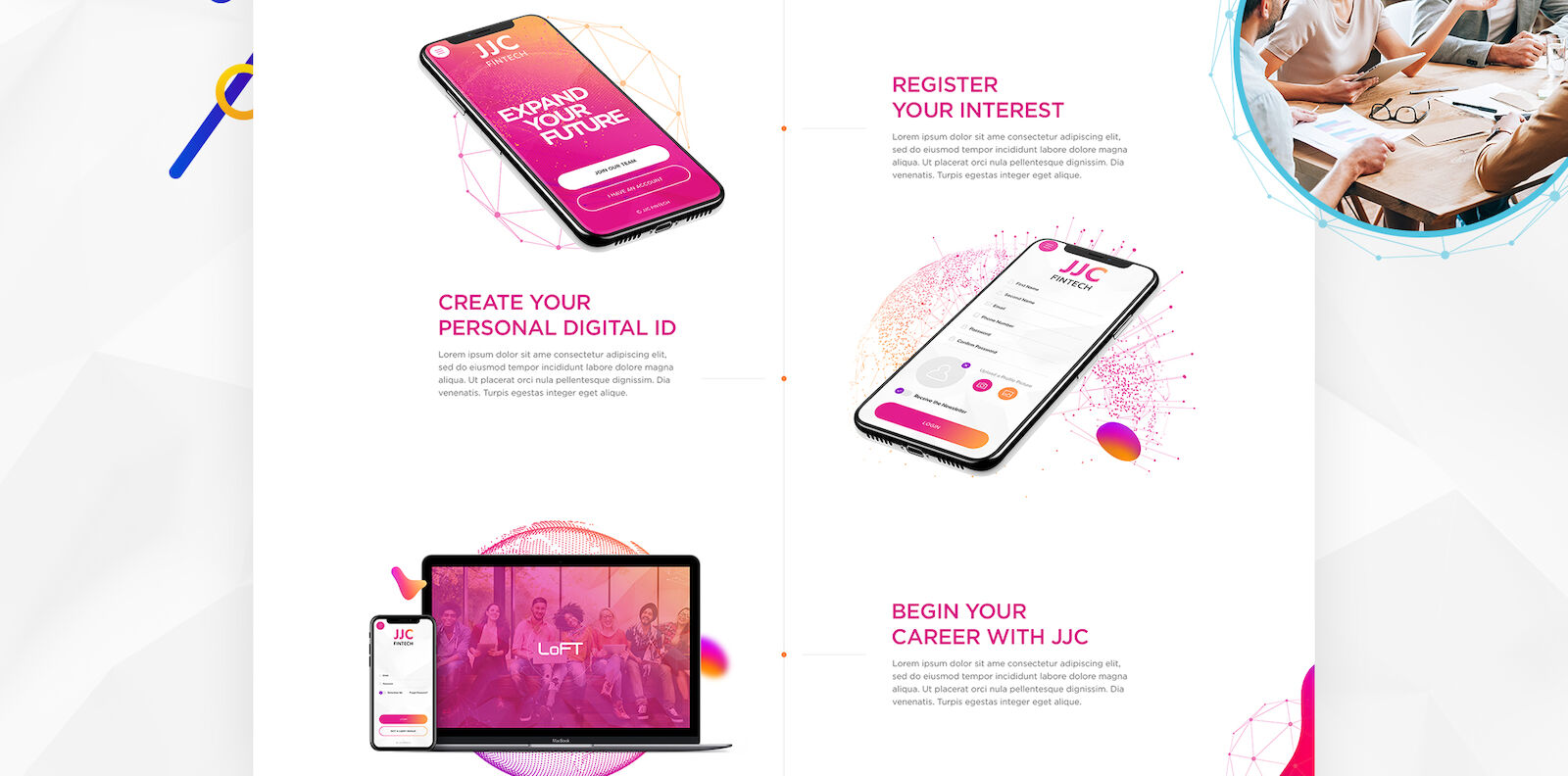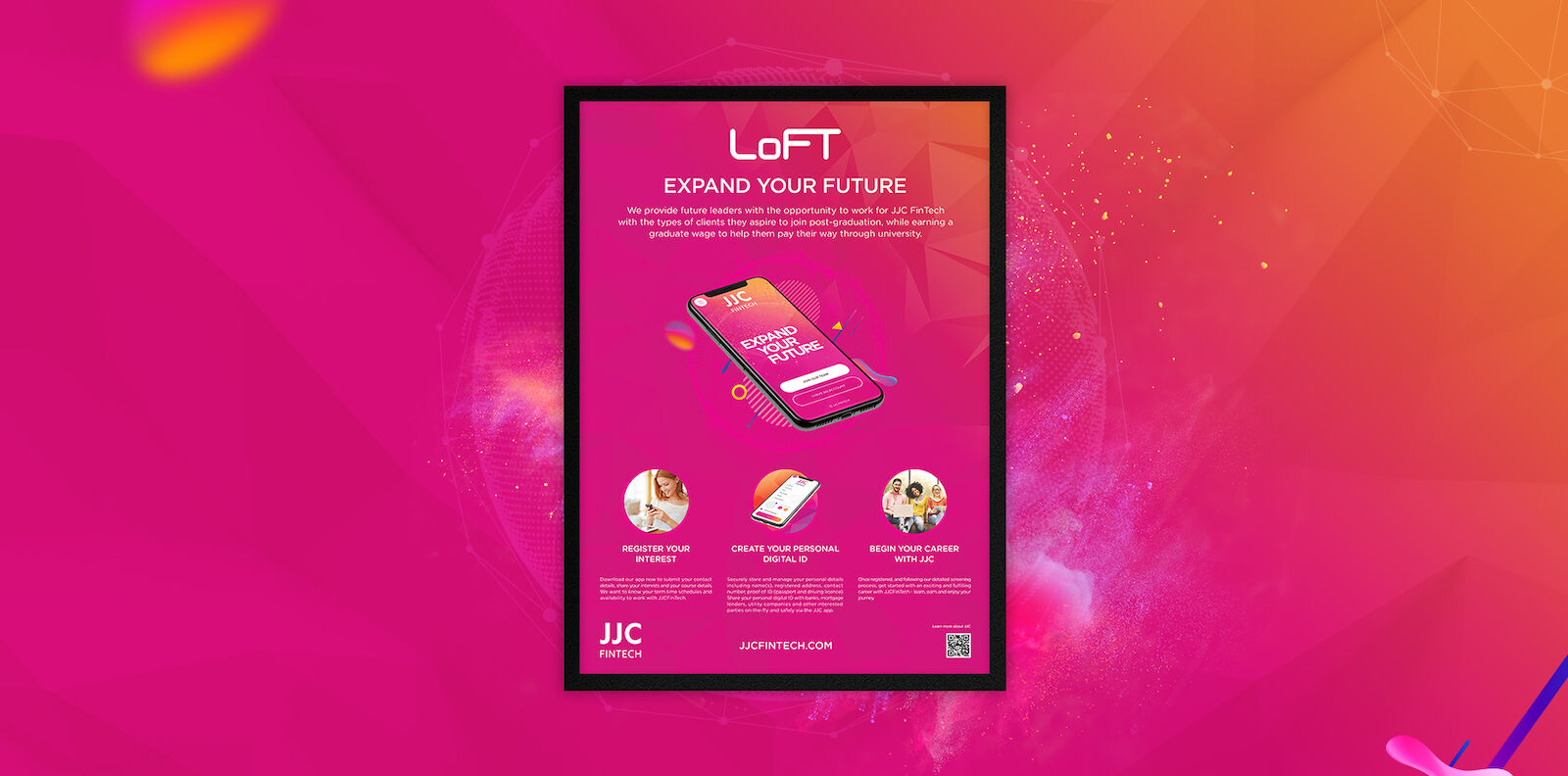 JJC FinTech involved the creation of a KYC application process called LoFT, which provides a unique platform to enable students to share their digital ID and work alongside JJC to complete billable work tasks. Providing a career platform with securely stored and managed personal details including, registered address, contact number, proof of ID (passport and driving licence). Sharing your personal digital ID with banks, mortgage lenders, utility companies and other interested parties safely and on-the-fly via the JJC LoFT App.