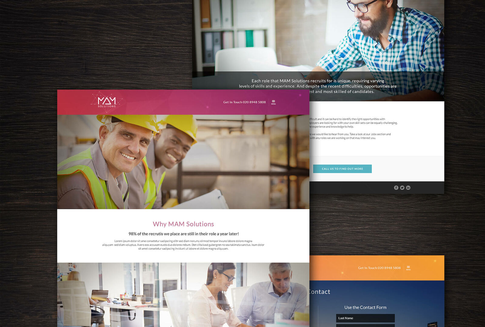 These guys are not your average IT recruitment specialists, they literally can bring the house down. Knowing that they can rock the house we set out to give them a new and much improved modern site. The focus is to clearly present them as a dynamic agency who are growing fast. The new MAM Solutions website design ensures we get the message across that they are a specialist IT and financial services human resources company based in Richmond Surrey.