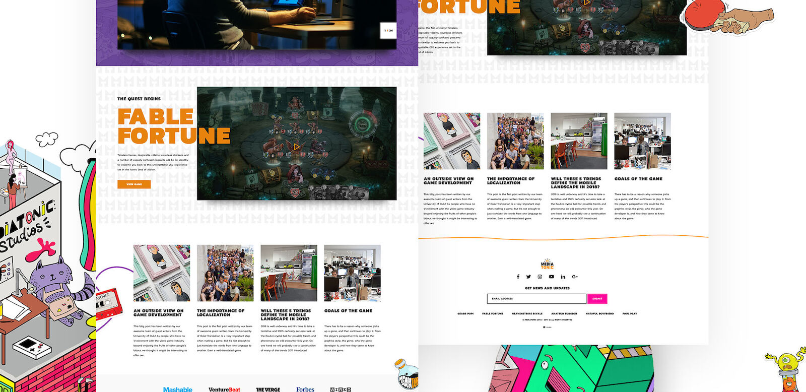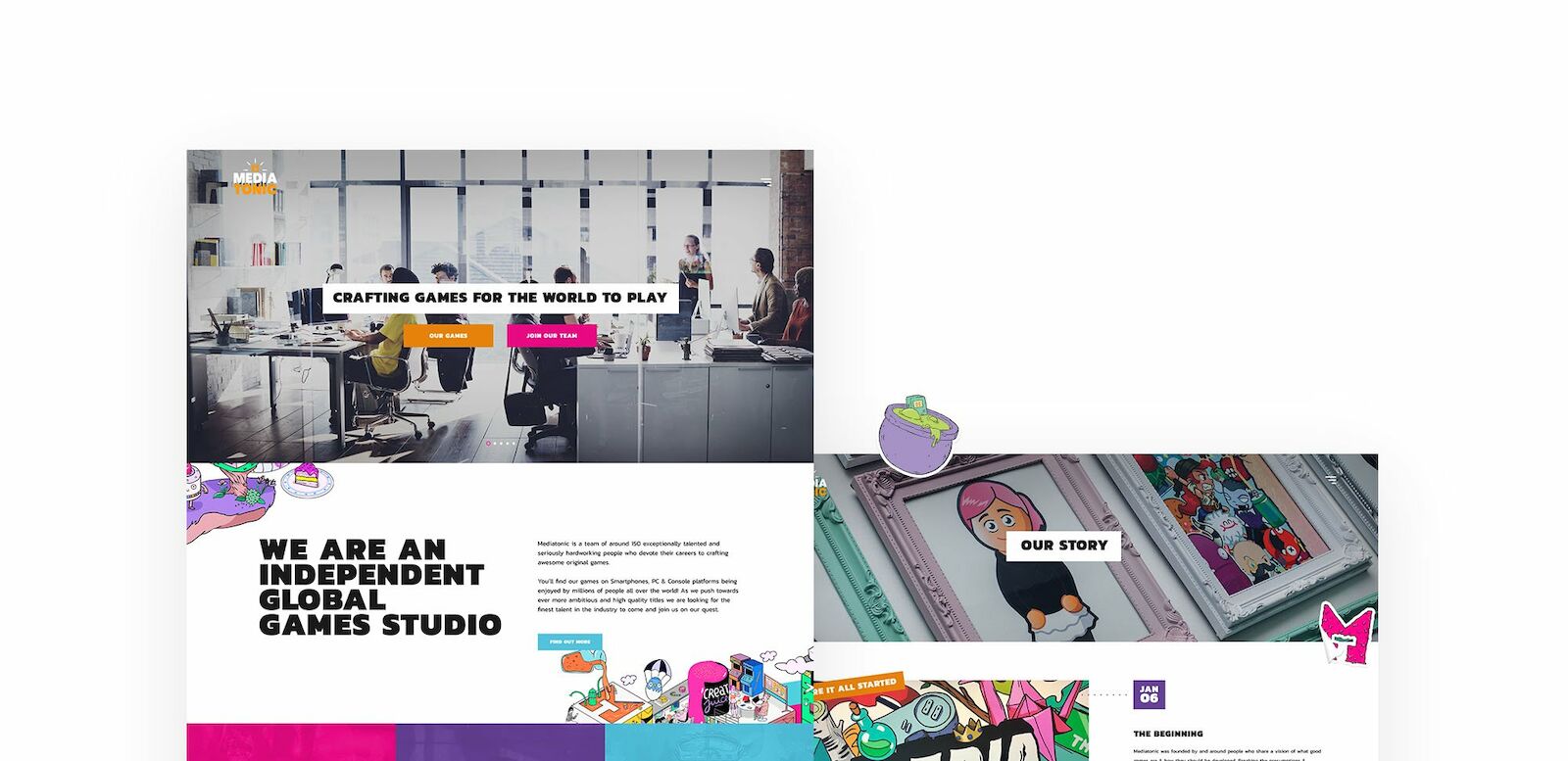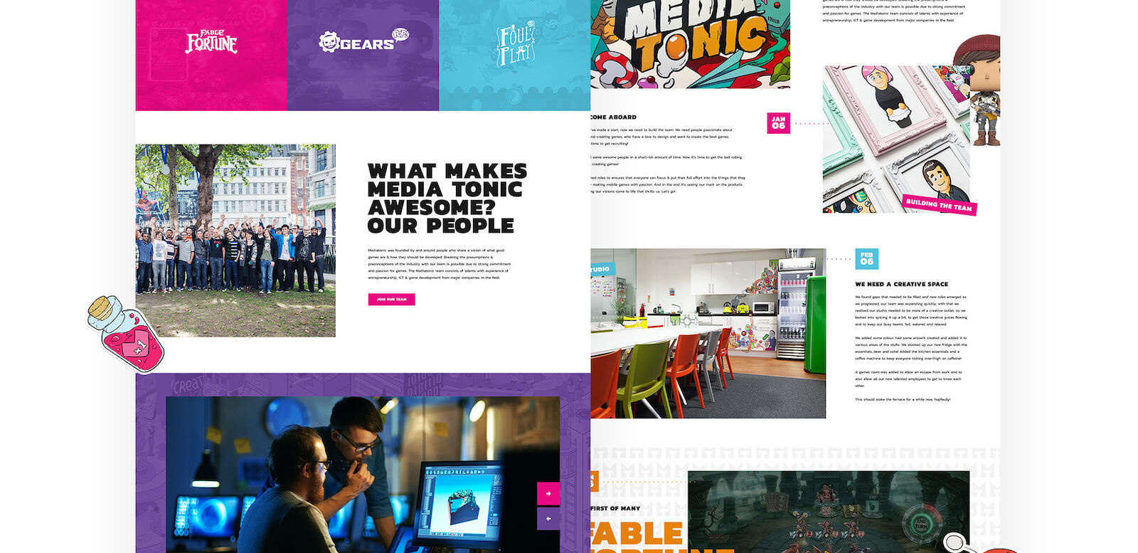 Media Tonic have a team of around 150 designers, artists and engineers who have been making unique games for more than a decade, including Gears Pop, Fable Fortune, Amateur Surgeon and Yahtzee with Buddies. ID Studio Web Agency working on new website planning, visualisation and an epic cool new illustration piece.