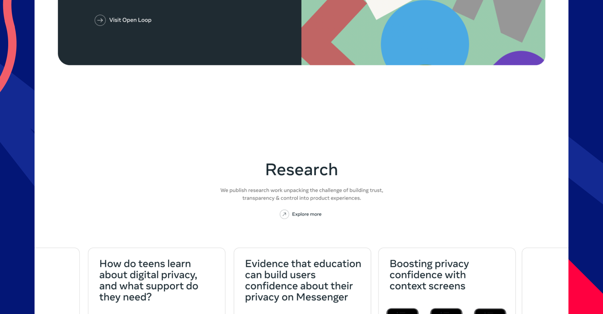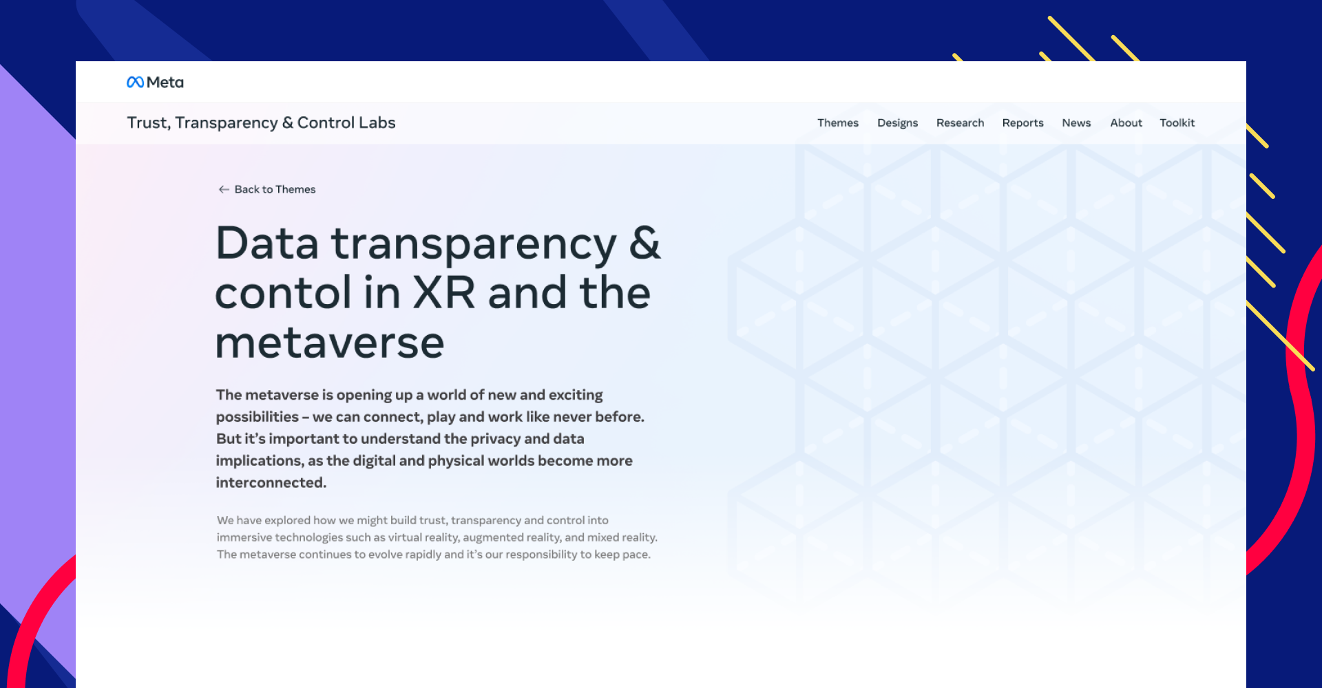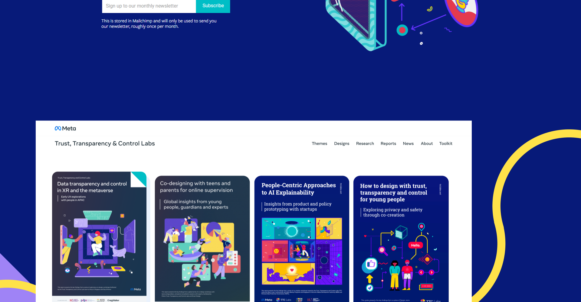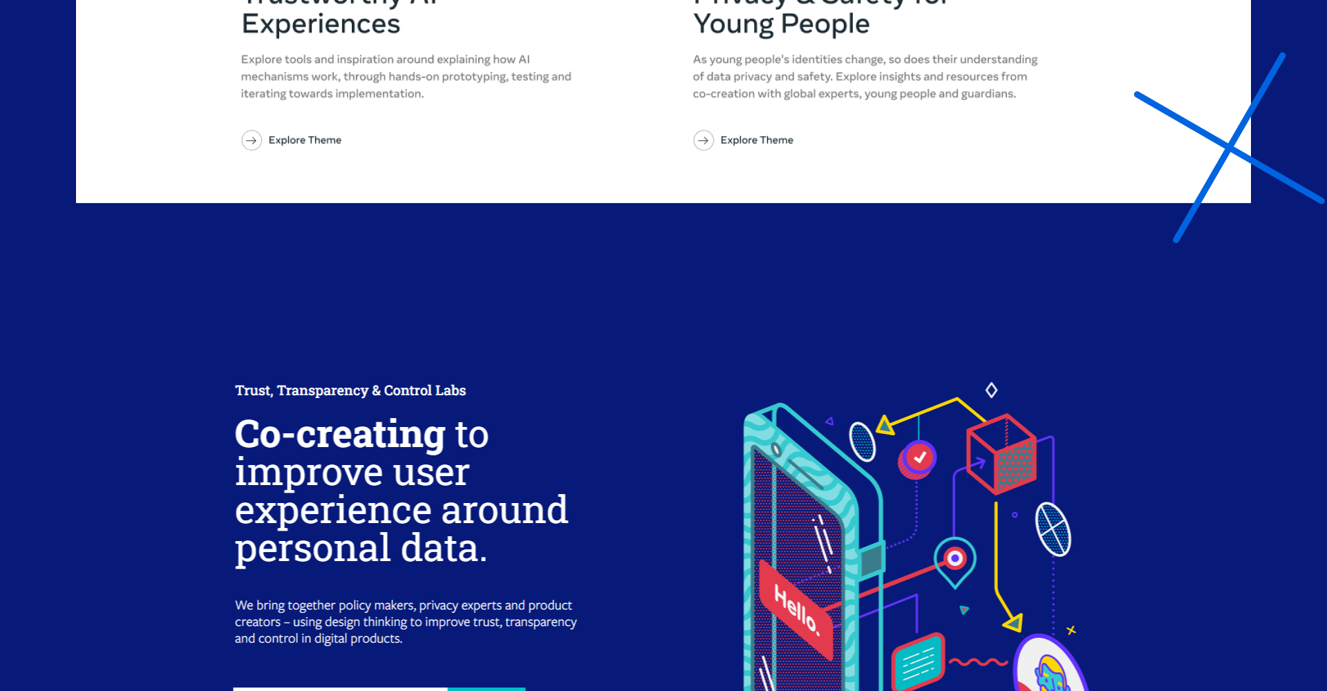 Meta TTC Labs brings together policy makers, privacy experts and product creators – using design thinking to improve trust, transparency and control in digital products. The Trust, Transparency and Contol Labs is a cross-industry effort to create innovative design solutions that put people in control of their privacy
