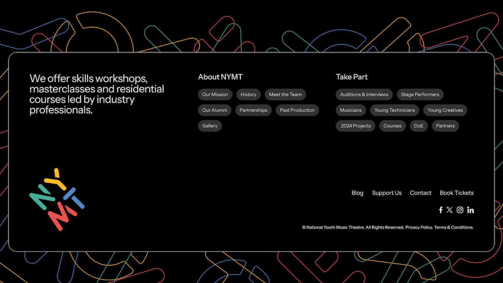 NYMT offers workshops, residential courses and performance opportunities in music theatre. The National Music Theatre is an arts organisation and charity which produces theatre productions for which young people between 11-23 to perform as actors and musicians and acts as an incredible gatway for the next generation of performers to be seen and heard.
