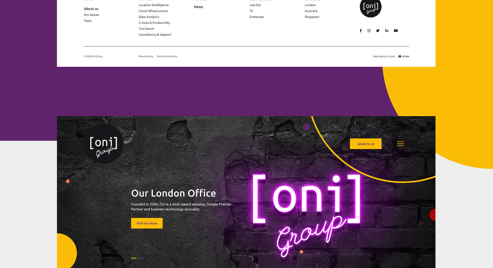 Oni is where entrepreneurs meet engineers. They are a multi-award winning, Google Premier Partner and Specialist enabling thousands of clients across 50 countries. With offices in London, Sydney and Singapore, Oni empowers over a quarter of a billion people with their solutions every day.