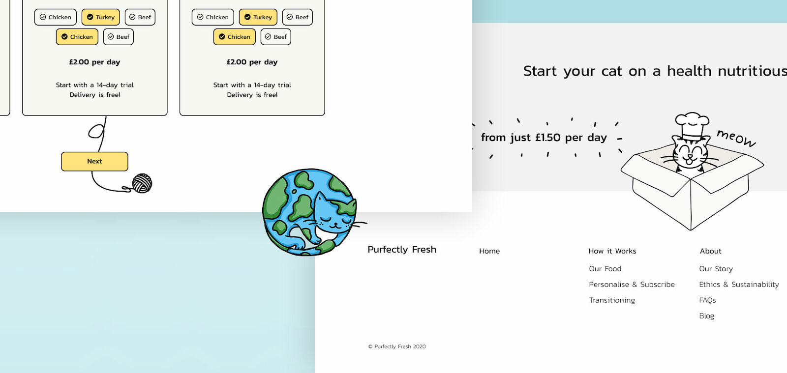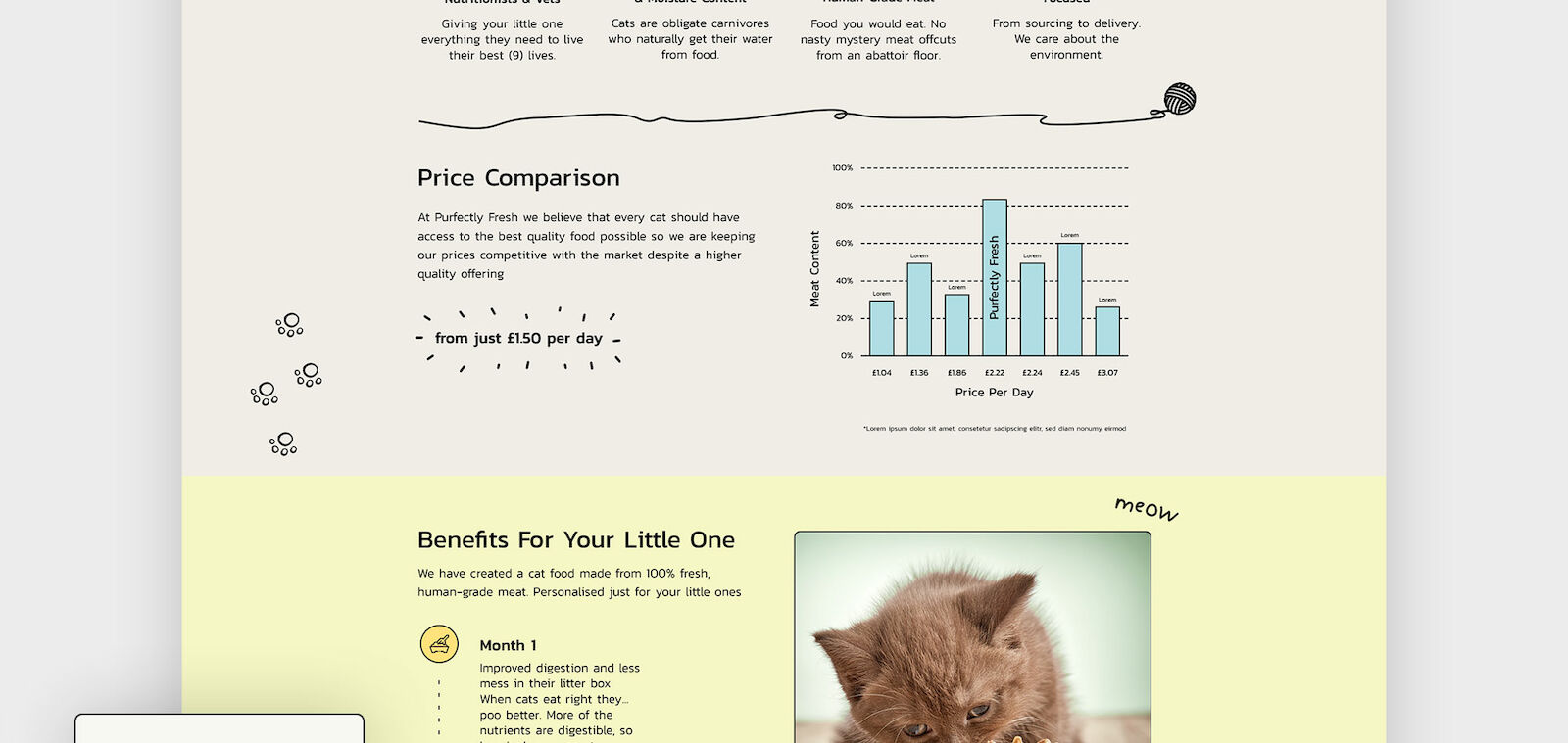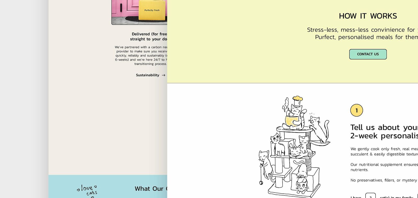 Fresh, real food. For cats. The UK’s first personalised cat food made from only fresh, real meat. Purfectly fresh are cat people who grew tired of commercial cat food brands advertising junk food as healthy food for cats. So they created a cat food brand that makes sense specifically for each cats unique nutritional and biological needs.