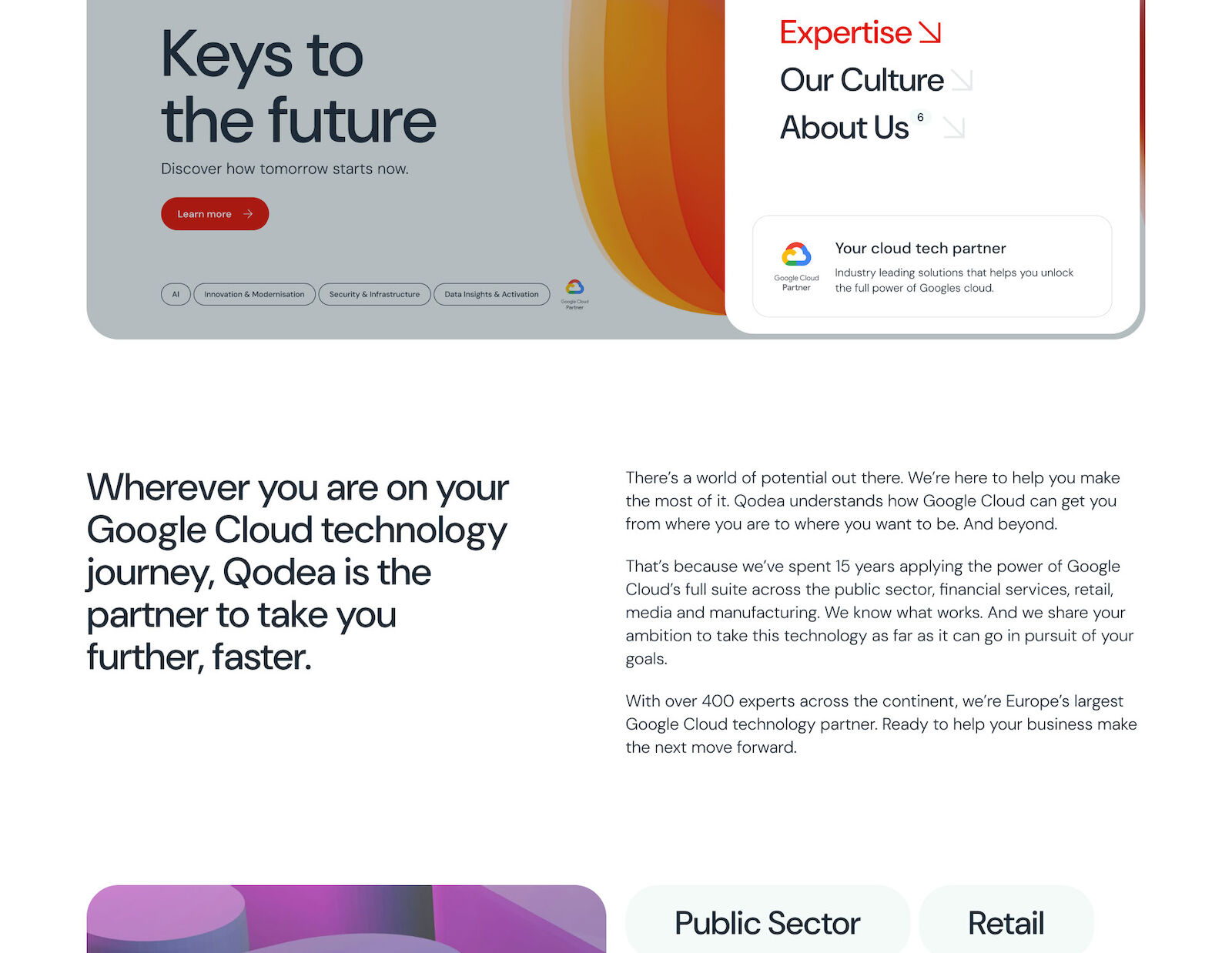 Qodea is a merger of Appsbroker and CTS, ID Studio was tasked with the creation of the new website to help with the digital challenges that come with a large merger.