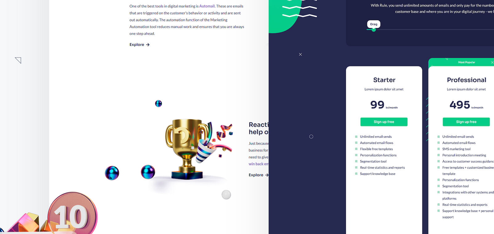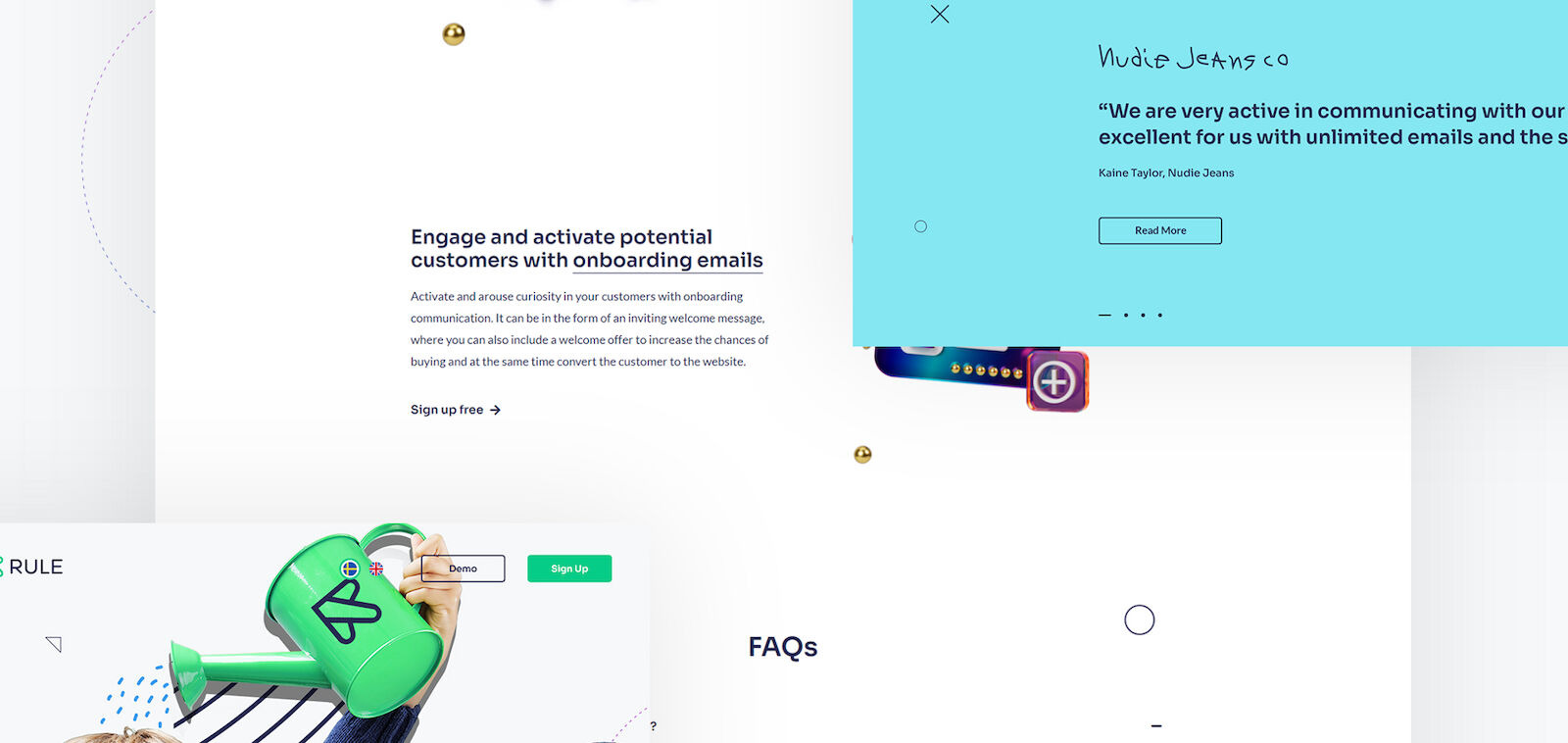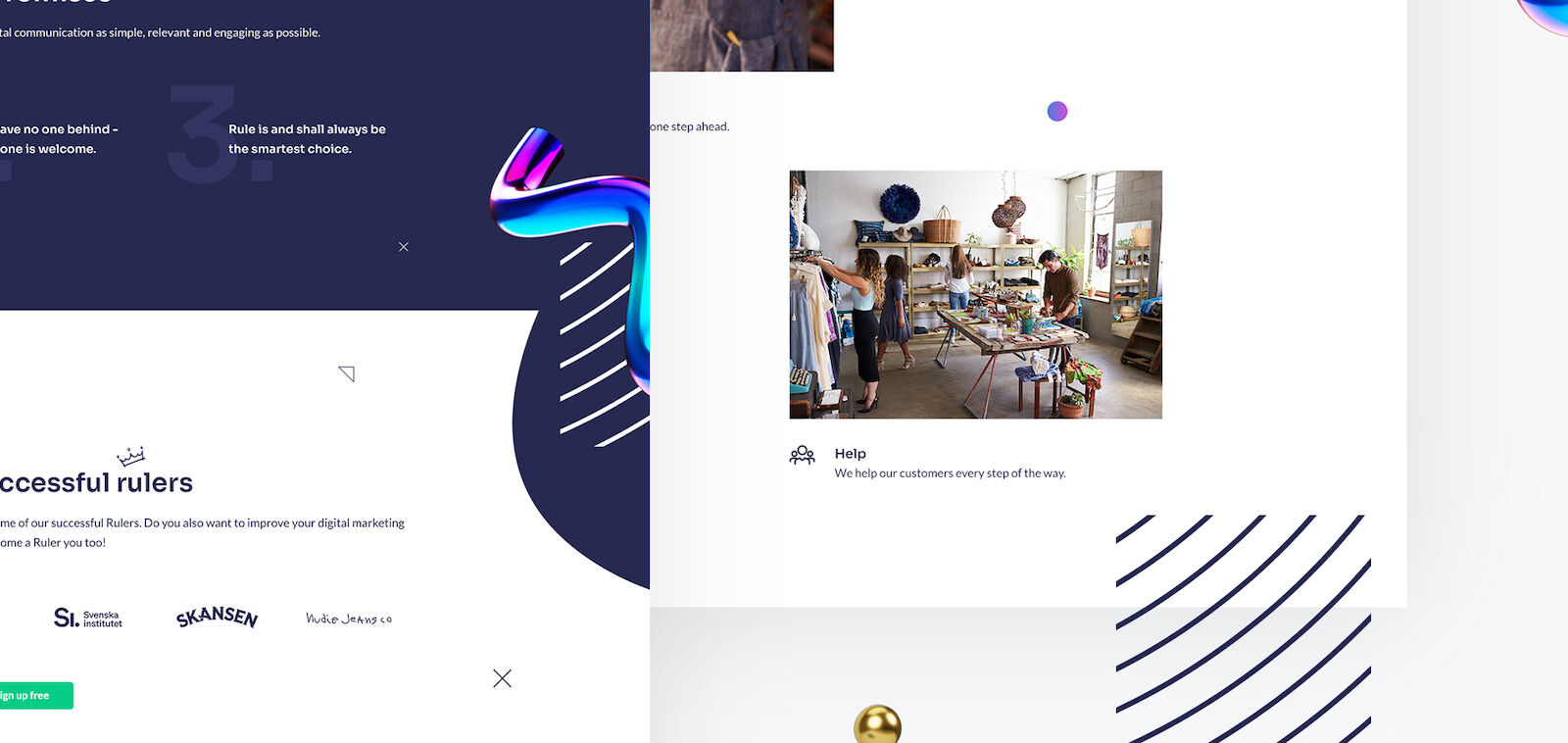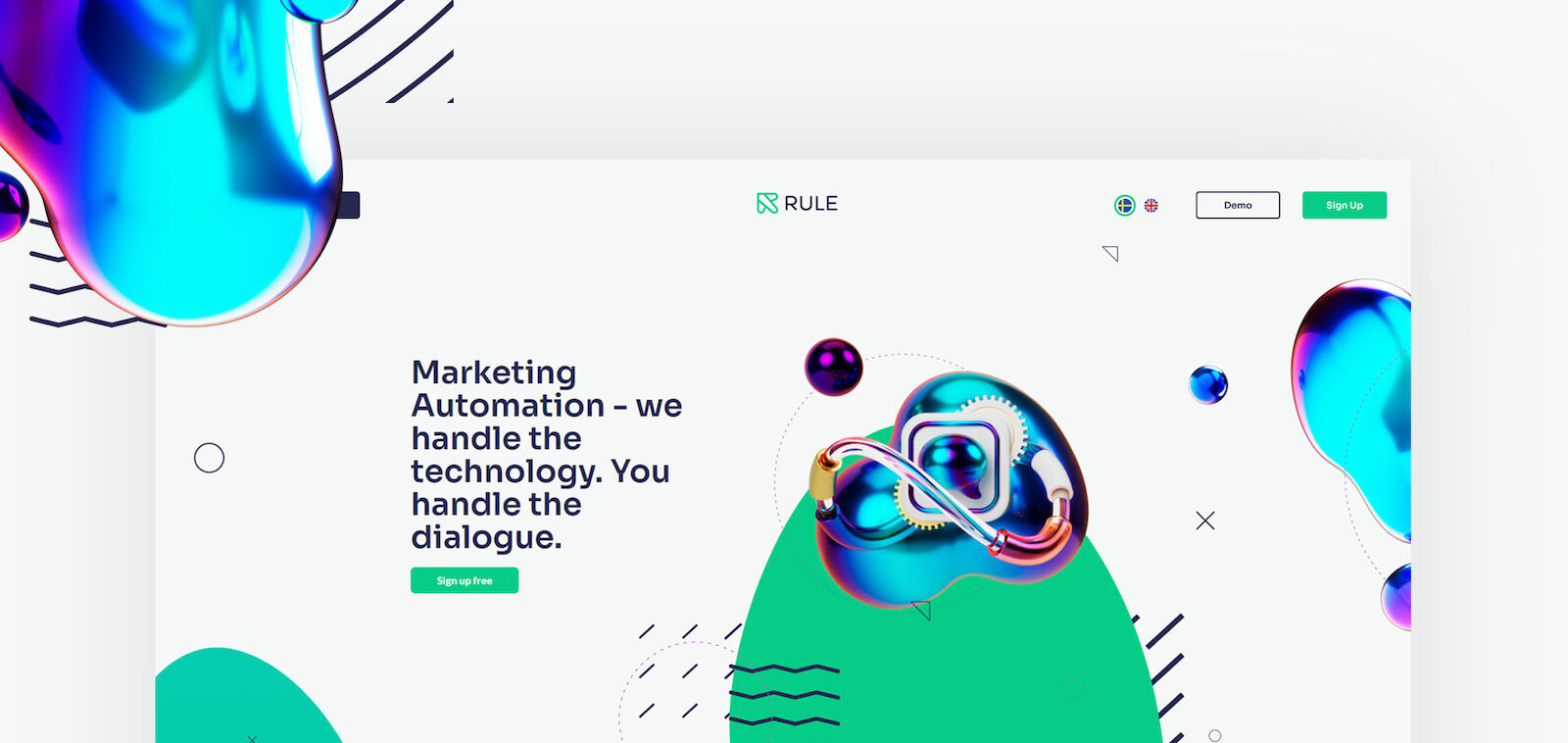 Are you ready to Rule? Boost engagement and growth with Rule and their smart digital communication platform. Rule are a Swedish based client who provide a platform solution for: Marketing Automation, Newsletters, SMS, Email Marketing and Customer Journey Engagement. They will help you drive sales and engage with your customers. For the website ID Studio was asked to refresh the overall brand presentation, Rule also brought in a 3D artist who helped take the design concept forward and create a fantatstic range of 3D icons and visuals for Rule.