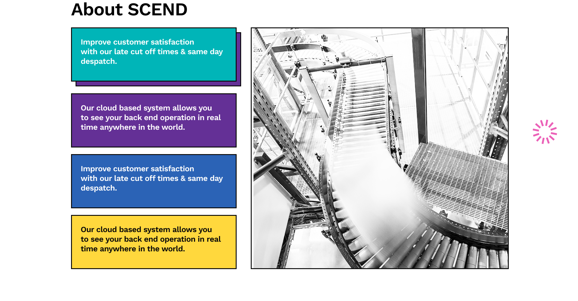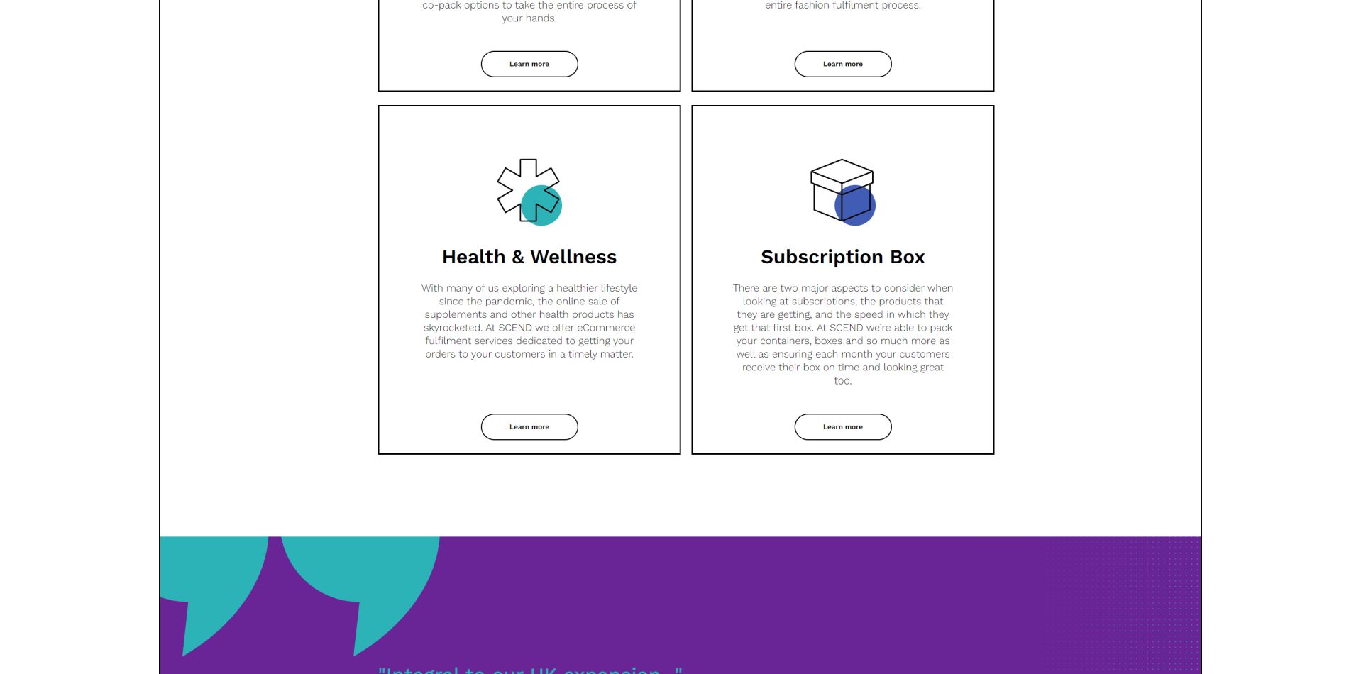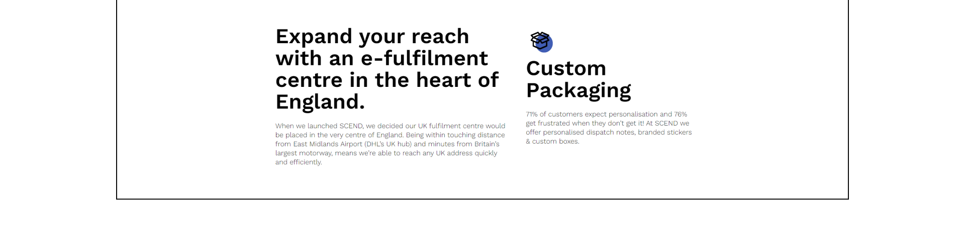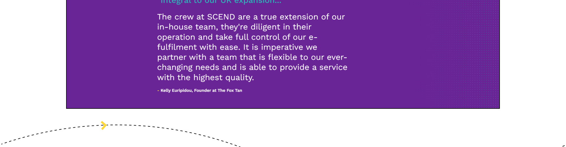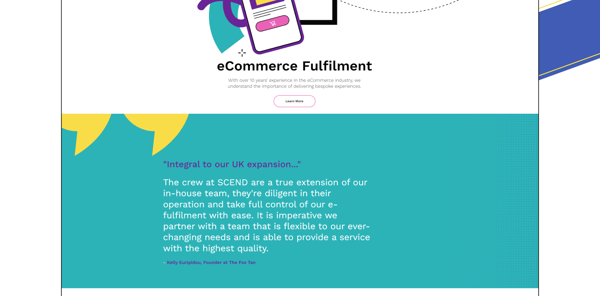 SCEND has built its brand with a primary focus on its clients. Their relentless commitment to innovation in the eCommerce space creates an environment that fosters success for their clients. Their ultimate objective is to support the growth of the world's leading brands. With expertise in eCommerce fulfilment and supply chain management, they are the go-to specialists in their field. It was a great fit to partner with ID Studio, a web design agency with considerable eCommerce development expertise.