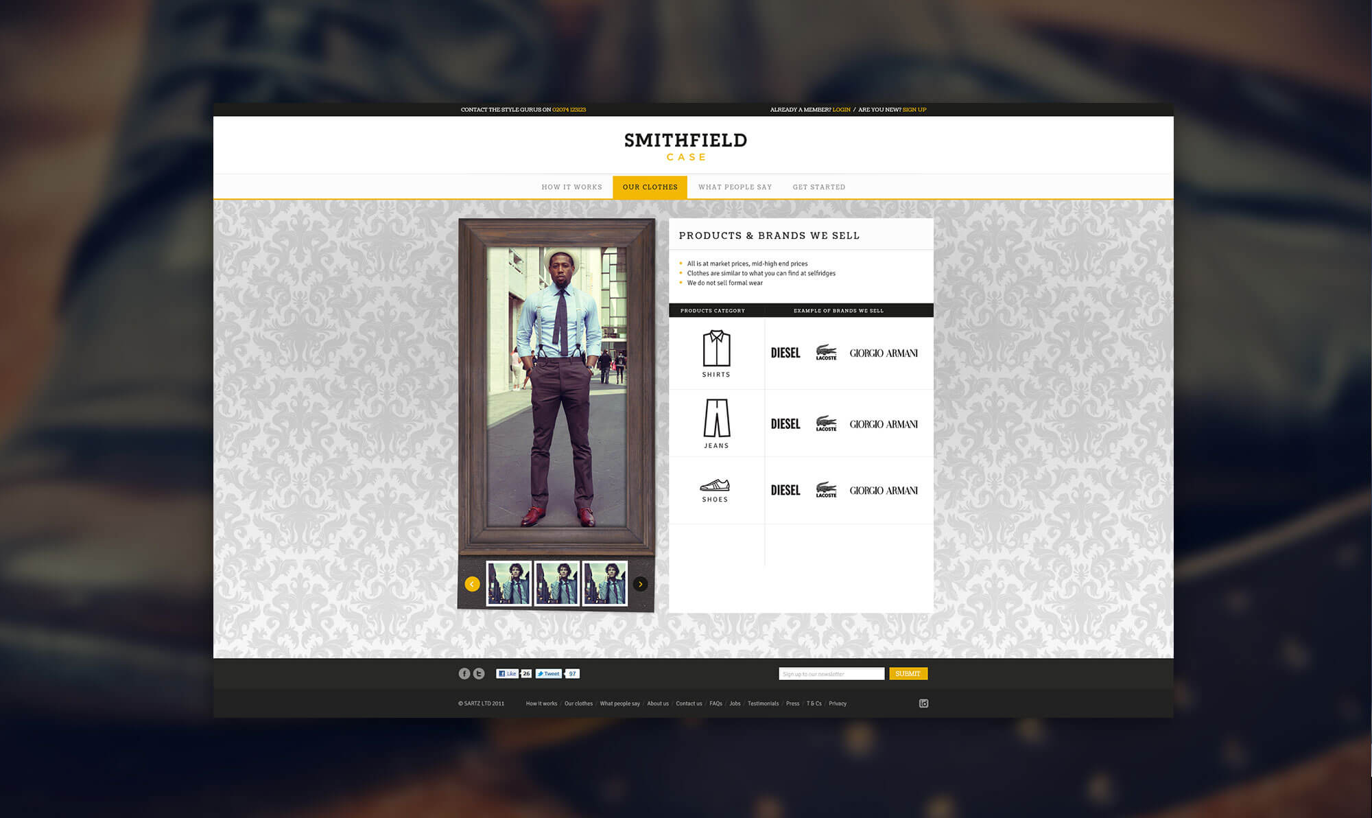 London start-up Smithfield Case is an online personalized clothing service for men offering an innovative way to discover and buy top branded clothes. All web design and development by ID Studio. SC is the no commitments, personalised clothing service for men which was a successful launch. Designer menswear, without the hassle of shopping. Start-up of the week Wired UK.