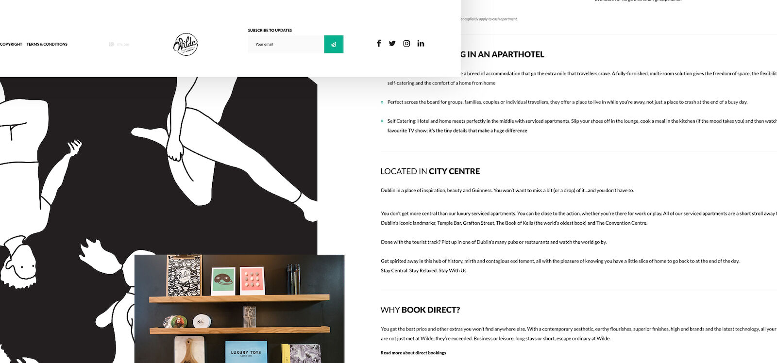 Perfectly blending home and hotel in premium European locations, Wilde will delight those seeking something different. Inspired by the wit and wisdom of Oscar Wilde, each apartment is carefully curated in the most considered and creative way that’s stylish, sophisticated, playful, practical, unique in personality and alive with Irish spirit.