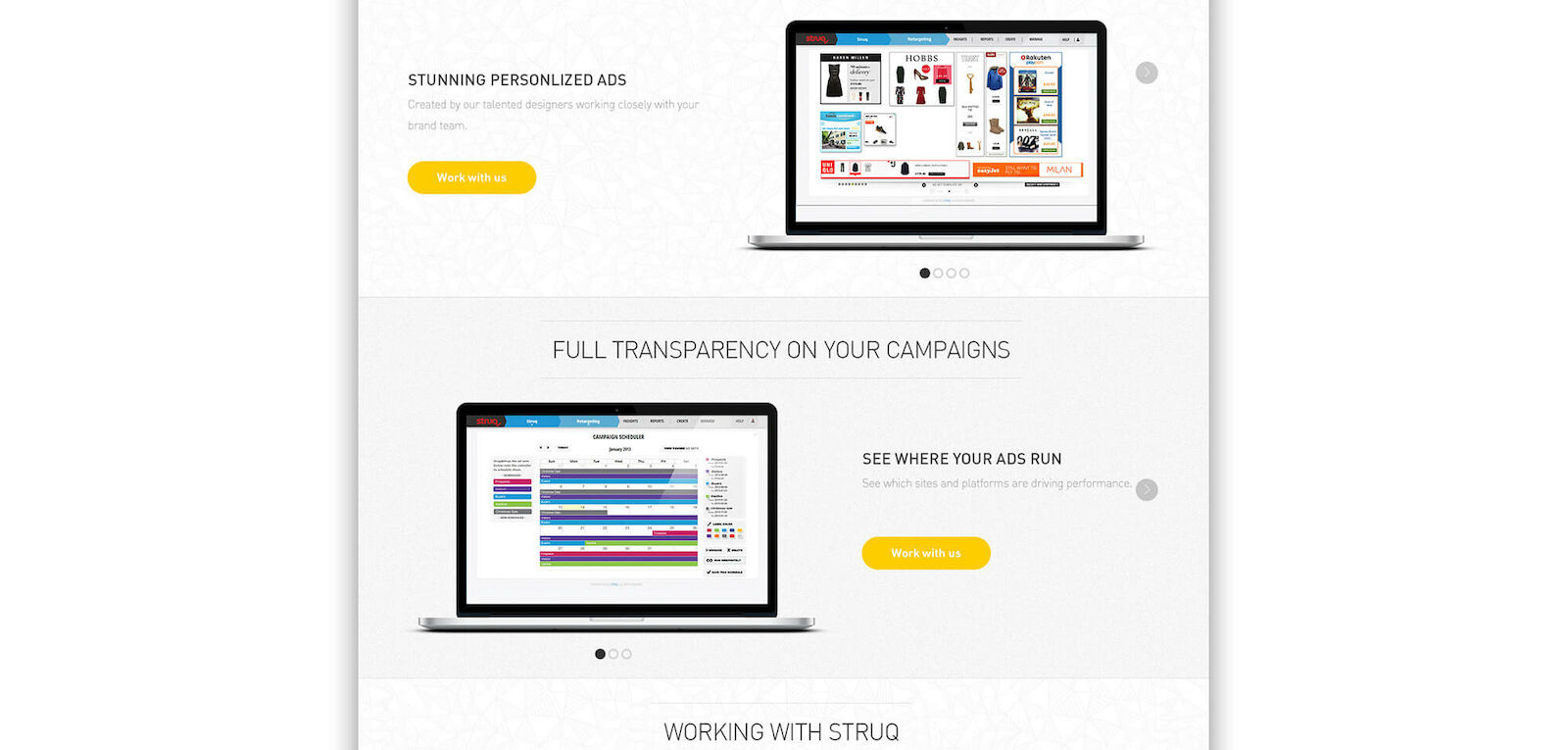 A fresh cool modern web design presentation for a cool modern London based company. Struq is an ad personalisation and cross device retargeting company. They believe true ad personalisation creates individual ads for different users based on who they are, what they want and where they are in their purchase journey. Struq are experts in finding new customers, increasing the value of existing customers, and driving sales.London start-up Smithfield Case is an online personalized clothing service for men offering an innovative way to discover and buy top branded clothes. All web design and development by ID Studio. SC is the no commitments, personalised clothing service for men which was a successful launch. Designer menswear, without the hassle of shopping. Start-up of the week Wired UK.