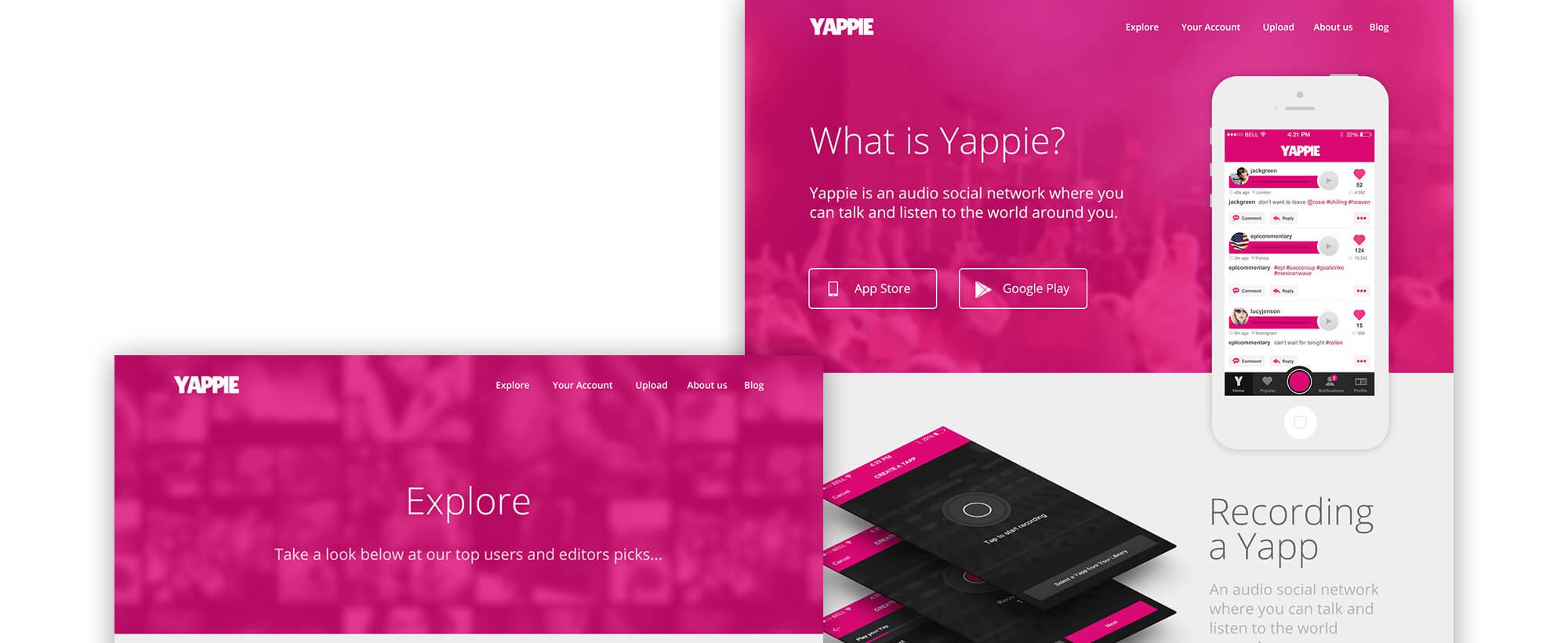 We are pleased to announce the launch of the second version of Yappie. Yappie is an audio social network where you can talk and listen to the world around you. Recording a Yapp is easy: simply say what’s on your mind, add a filter and you’re good to go! Create your profile to define your personality. Add images and a biography to let everyone know a little more about you.